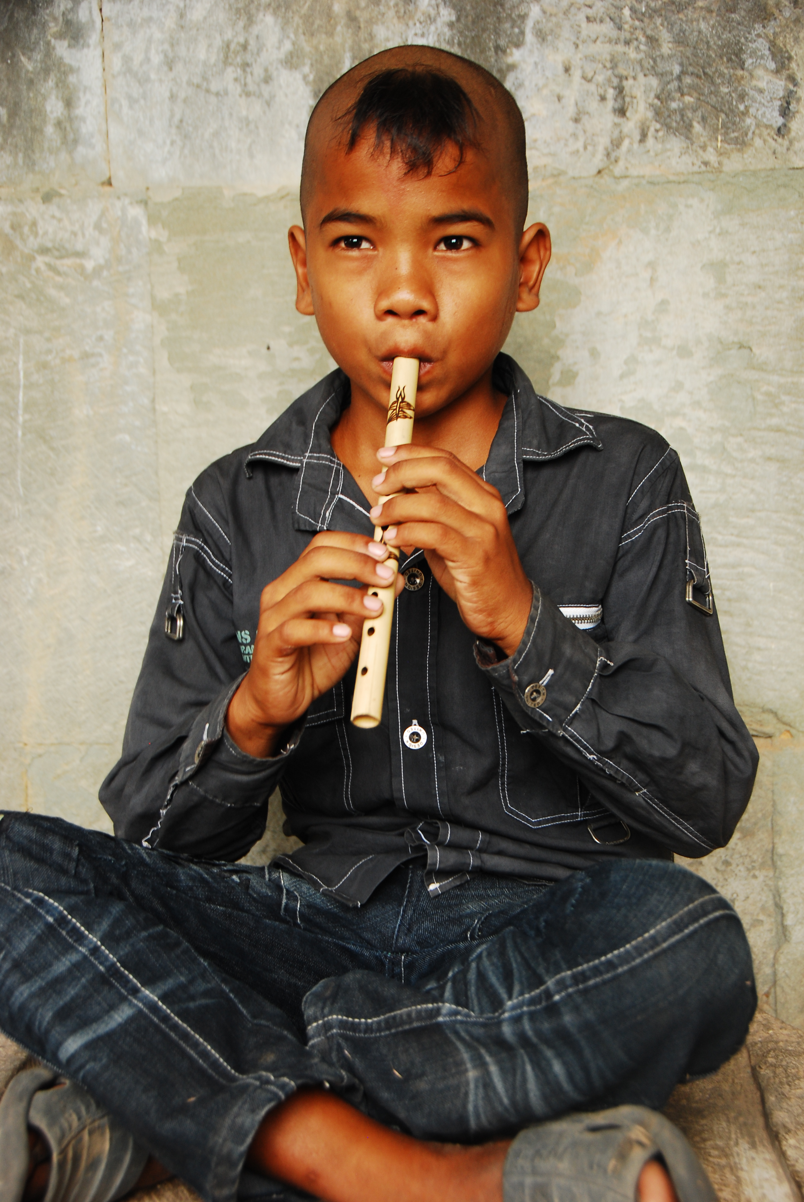 itu dedek kicil yang main seruling, kenapalah rambutnya musti sisa poninya doank gitu hahaha 😀