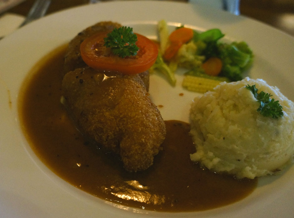 Soal rasa, nah….ini dia……..mari kita jadi ย Gordon Ramsay hahaha ( gak cocok ). Menurut Matt ribsnya dia enak ( bahasanya Matt lumayan ) sementara Chicken Cordon Blue saya sih biasa aja tapi bukan berarti gak enak. Maksutnya yah…biasa2 aja gitu hehehe. Sementara yang gorengan isi keju itu kalo pas lapar sih enak banget makannya, tapi karena saya pernah makan yang lebih enak di Cafe Pisa jadi yahh….agak susah ngomongin ini enak banget.