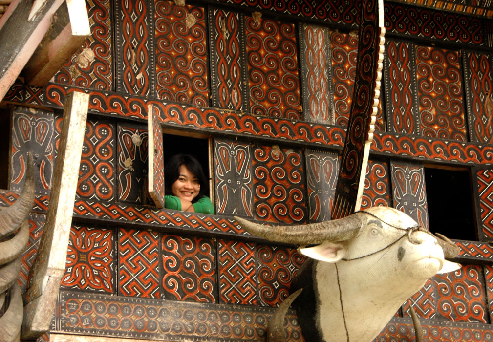 suka deh lihat foto Noni di jendela tongkonan, cantik banget