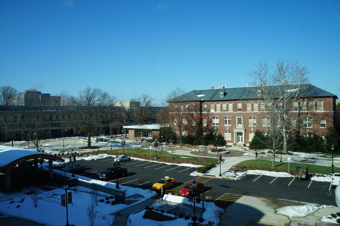 Ternyata begitu masuk kampus saya udah sukaaaaa banget. Emang sih bukan kampus yang dari gedung-gedung tua gitu tapi cakep banget. Udah gitu karena udah mulai masuk holiday season agak sepi plus dingin. Ahhh pokoknya saya suka banget deh kampus ini, coba gimana rasanya kalo di bawa tour ke Havard, Yale, NYU, Colombia dll yaa ๐