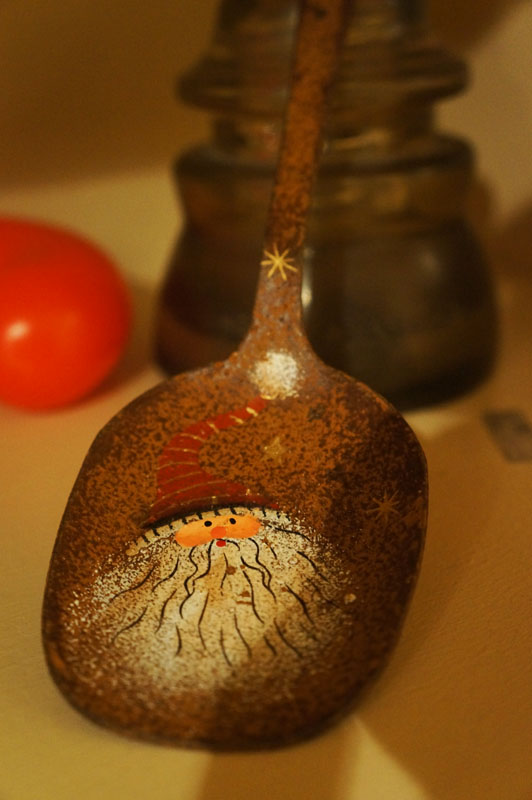 Ada banyak hiasan-hiasan di rumah Peter yang gak biasa. Contohnya pohon natal yang nungging tapi entah kenapa koq keren ya di sudut ruangan, sendok santa yang tergolek di rak kayu, meja makan yang kece banget dan haduh nyesel gak moto kamar mandinya yang apik dengan warna biru. Ahhh asli ya, di rumahnya itu saya sampe gak bisa berenti keliling karena pengen motoin semuanya. Menurut si Matt karena Peter tinggal sendirian jadi dia bisa asik-asik aja ngedekor rumahnya 🙂 . Oya karena Peter baik banget juga, jadi dia memperbolehkan saya memposting foto rumahnya di blog ini 🙂 .
