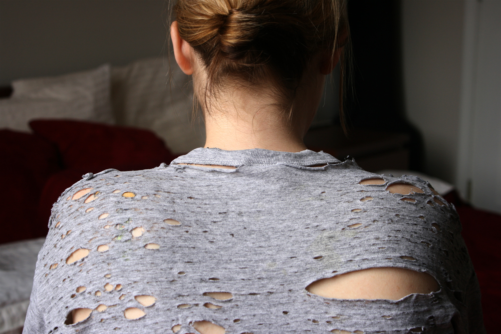Pernah punya t’shirt kayak gitu gak? mungkin gak sampe yang bolong-bolongnya serame itu ya hehe. Saya sih ada t’shirt yang bolong dikit (dikit aja loh) dan biasanya dipake buat tidur. Bolong di t’shirt saya juga bukan yang parah banget. Palingan bolongnya itu cuman dikitttttttt banget , tapi kalau ngeliat t’shirt buat tidur yang dipunya si Matt, ish…..sungguh “menjijikkan” .