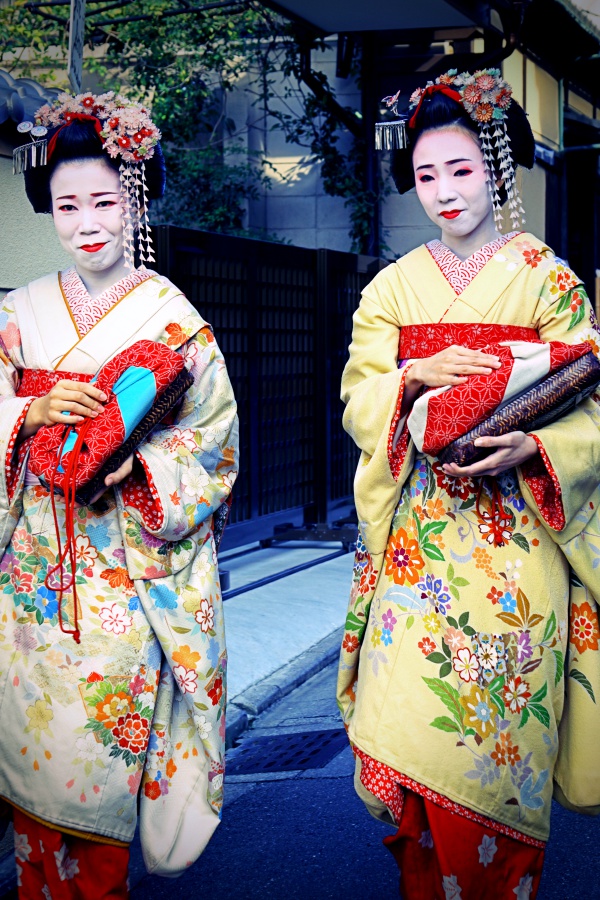 1. Saya juga sempet foto bareng 2 geisha (maiko? soalnya masih muda). Tapi setelah moto, saya curiga, jangan2 mereka itu turis yg dandan sebagai geisha, soalnya baek banget mau diajak foto bareng :p Padahal yg saya baca dari blog orang, mereka biasanya menghindar difoto