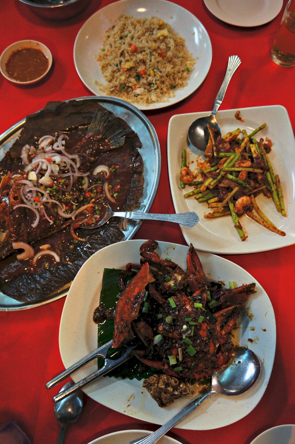Malam itu kita pesan udang, kepiting, ikan tiga rasa, asparagus tumis belacan, dan nasi goreng. Semuanya enak. Semuanya bikin foodgasme. Serius, loh, enak banget. Kita makan sampai gak bersuara gitu. Sibuk semuanya dengan makanan masing-masing. Nasi gorengnya aja enak banget dan bikin nambah. Duh….kalo gak kepikiran saya gampang banget gendut, pasti udah minta tambah lagi. Ikan tiga rasanya juga cihuy banget rasanya 🙂