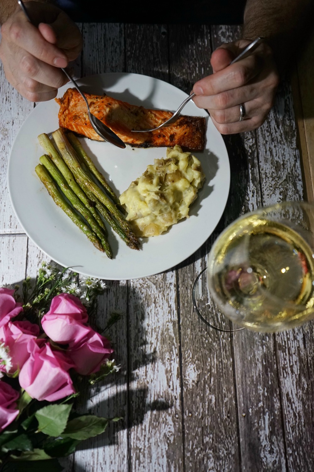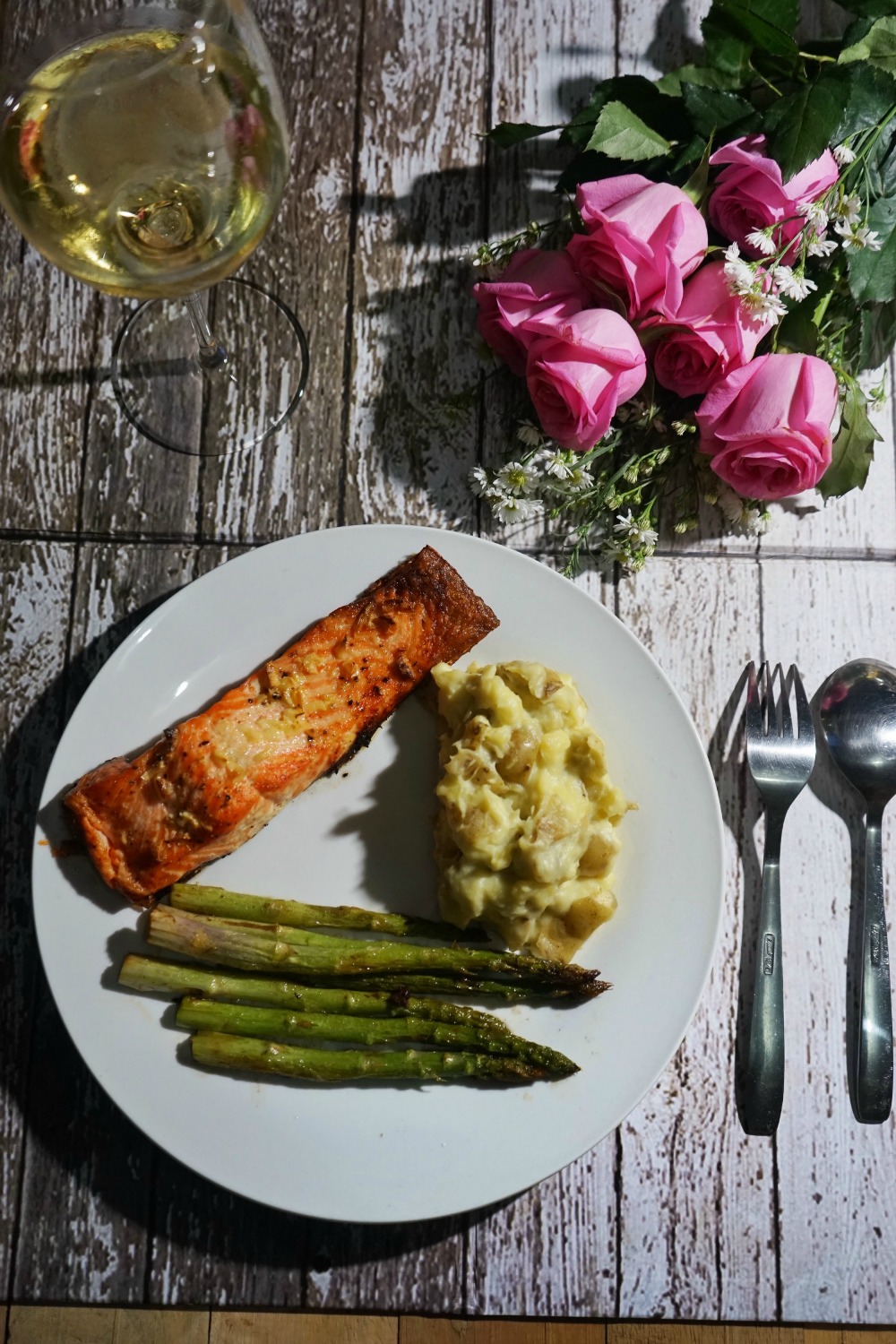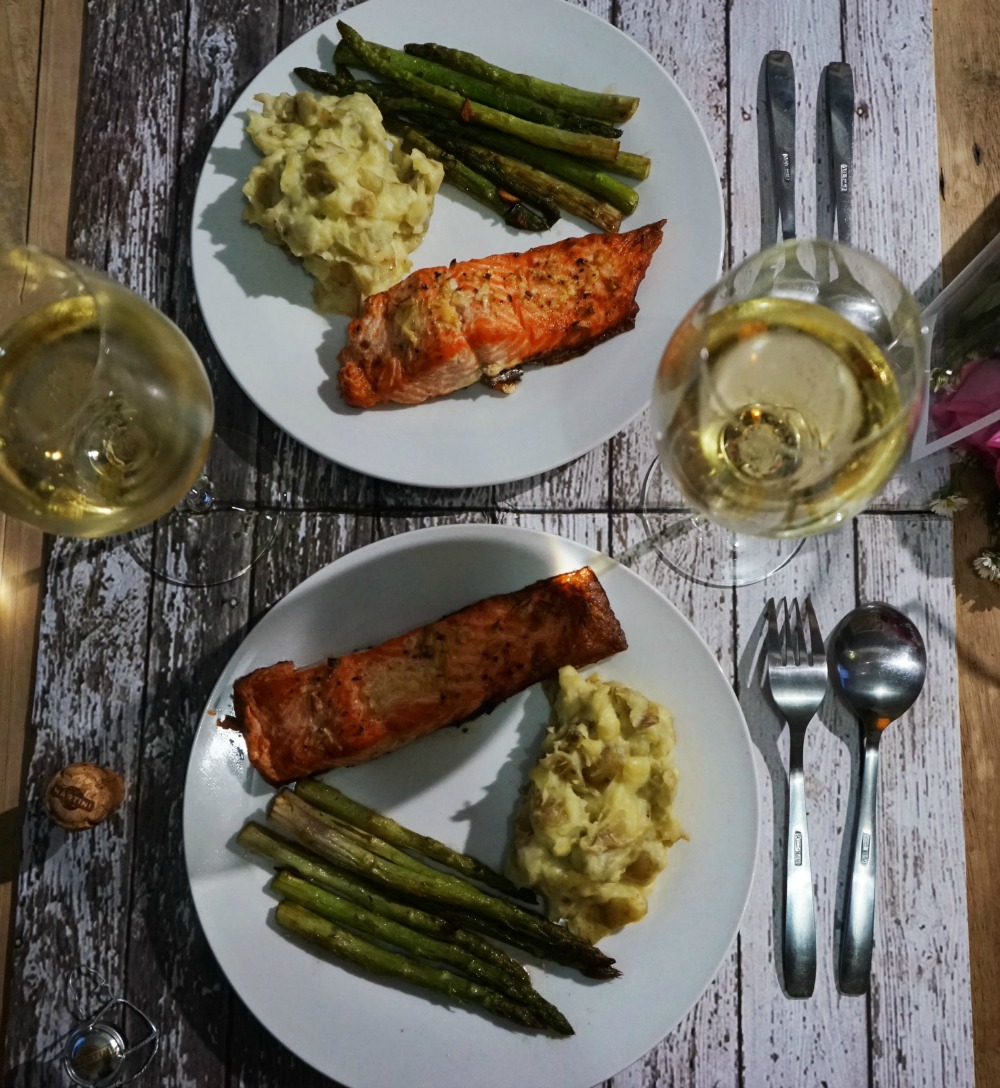 itu makanannya terutama salmon dan asparagusnya tampak enak banget..kangen asparagus…# lapiler