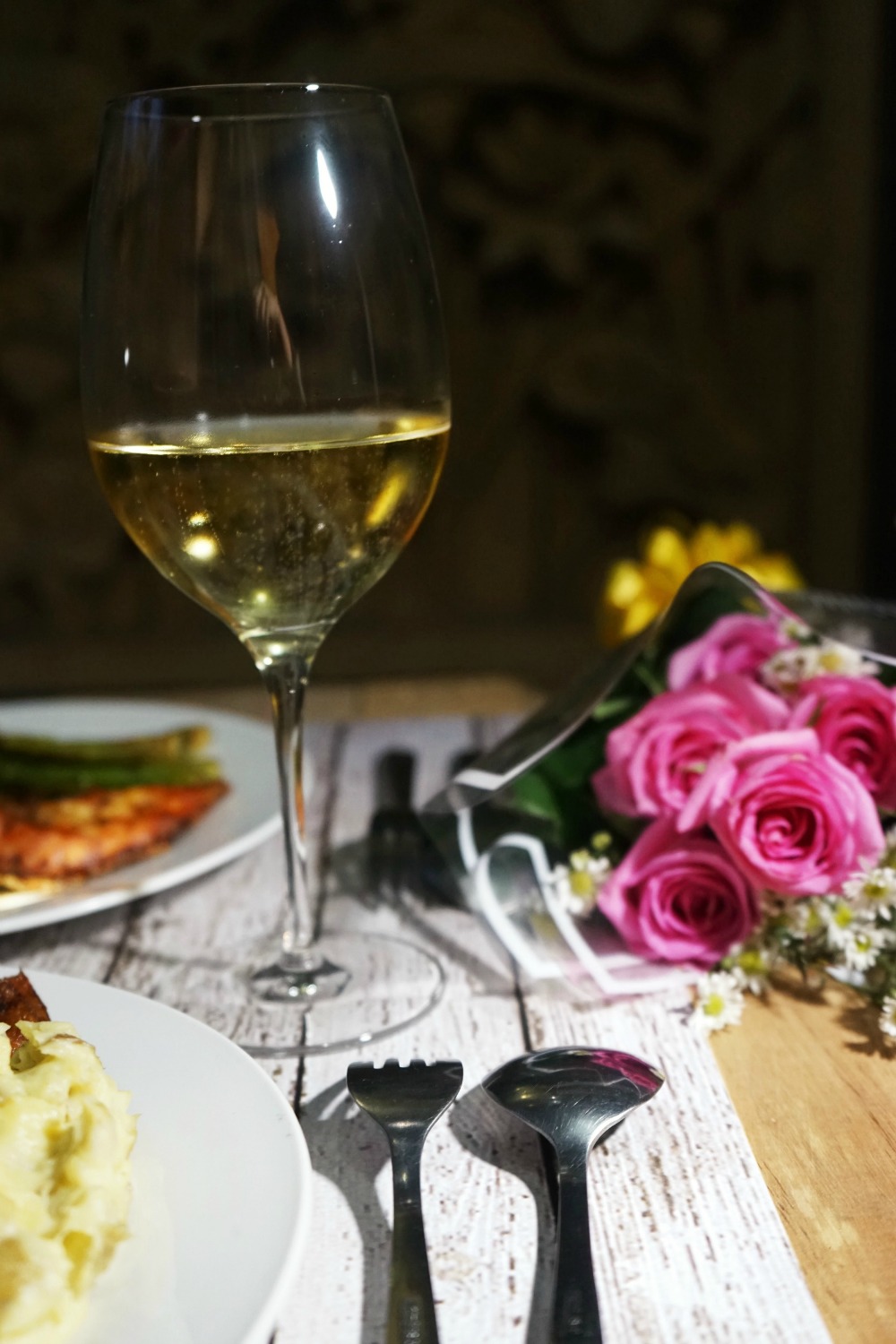 Trus…….ternyata dia udah set up dinner untuk kita berdua plus wine, yeay……………