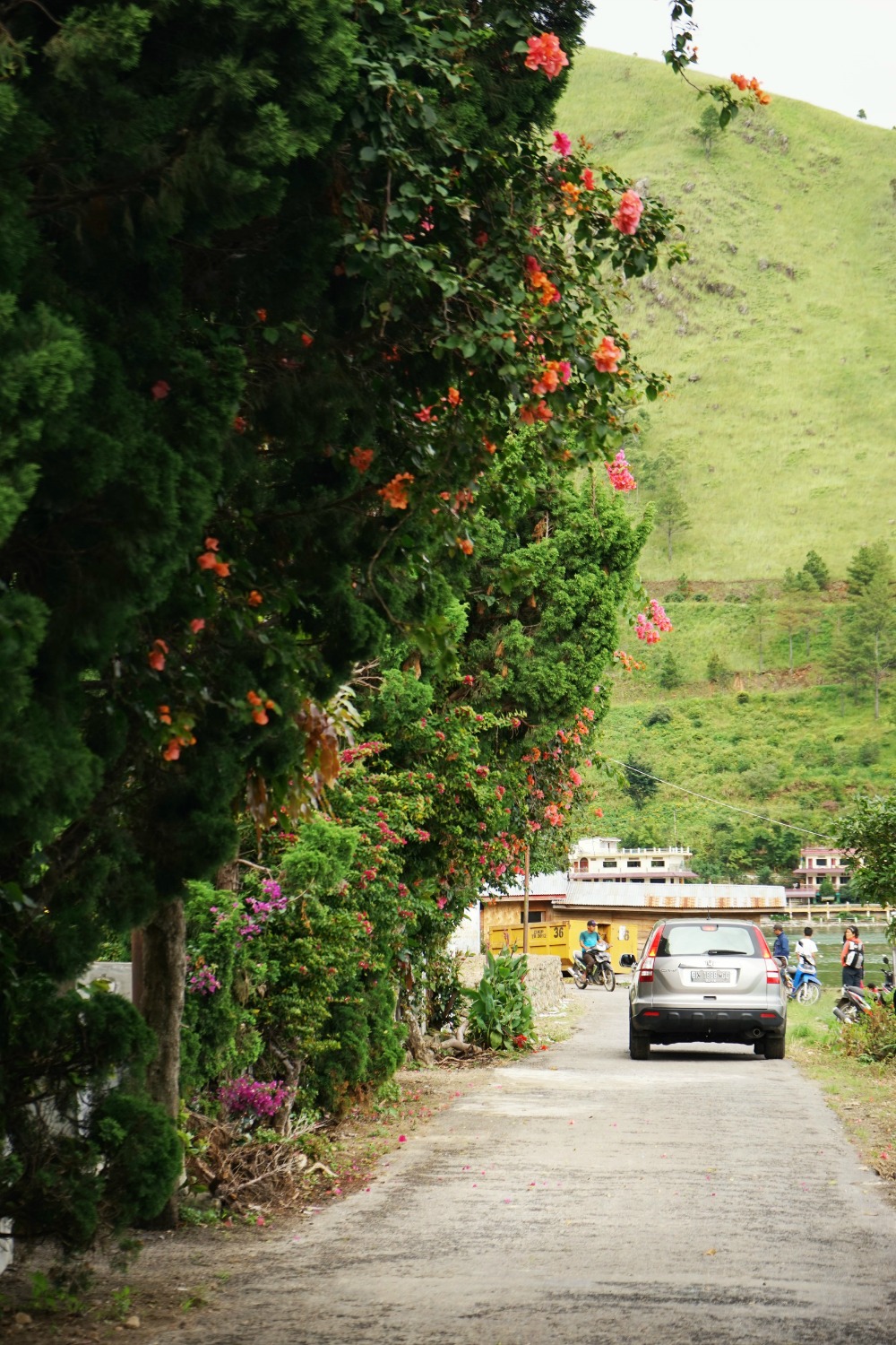 Jalan menuju desa dari atas bukitnya luar biasa pemandangannya