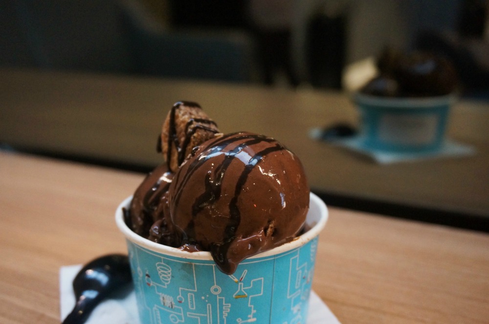 Minggu lalu kita cobain. Antriannya lumayan panjang. Saya lupa apa yang Matt beli. Cara penyajiannya luar biasa keren. Pokoknya canggih. Sewaktu datang, kita semangat banget dong. Namanya pun udah penasaran. Matt langsung berhenti makan dan diem aja sambil pundung. Dia bilang, abis ini saya harus traktir dia es cream di DQ. Jadi es creamnya gak dimakan aja dong huhu. Punya saya karena cuman coklat biasa, yah so…so…lah walau gak abis juga karena banyak banget.