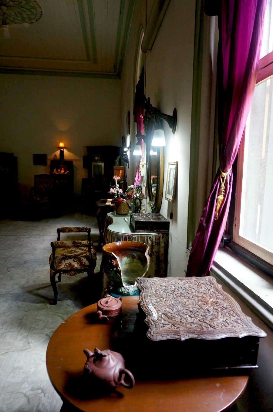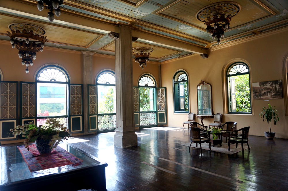 Didalam mansion kita bisa menemukan macem-macem barang-barang lama. Mulai dari piano sampai tungku batu untuk memasak. Seluruh bangunan ini dibangun berdasarkan arsitektur Eropa, Melayu dan Cina. Lantai dari tegel kunci didatangkan langsung dari Italia dan merupakan handmade. Lampu-lampu hias cantik dari Eropa. Secara keseluruhan kita bisa melihat semua unsur tersebut bersanding mesra. Pintu dan kayu khas Melayu cantik yang masih bertahan hingga saat ini. Pokoknya keren parah.