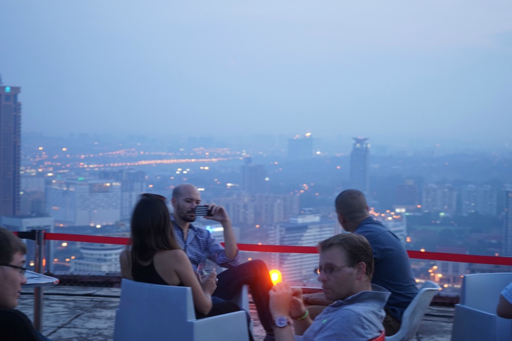 Kalau pengen motret kota KL di tempat ini lumayanlah walaupun terhalang beberapa gedung yang gak asik banget. Paling bener emang ke menara KL yang tinggi itu lain kali. Dari sini keliatan juga sunset tapi pas saya datang kemaren ketutup awan dan si Matt bilang kita kesana buat santai-santai bukan ngambil foto. Ya udin akhirnya cuman duduk-duduk makan matahari KL yang puanasnya minta ampun. Item lagi deh saya. Ini kulit beneran udah kayak brownis tapi belang belonteng.