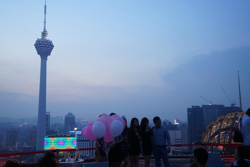Di KL kemaren kita berdua mikir dimana ya bisa ke bar yang tinggi? bodohnya kita gak nyari tau karena setiap sore selalu kecapekan. Jompo banget. Pas lagi liat instagram, @darmansor mention nanyain saya lagi di KL mau ngapain aja. @darmansor ini travel jurnalis yang rajin chat dengan saya dan kebetulan emang orang KL. Dia tanyain saya mau nyobain Helipad Bar atau enggak. Ya udahlah langsung cari info. Begitu bisa bangun karena sebelumnya saya mabok pain killer kita langsung nyari gedungnya. Eh, gak jauh dari hotel saya. Cuman 10 menit jalan kaki.