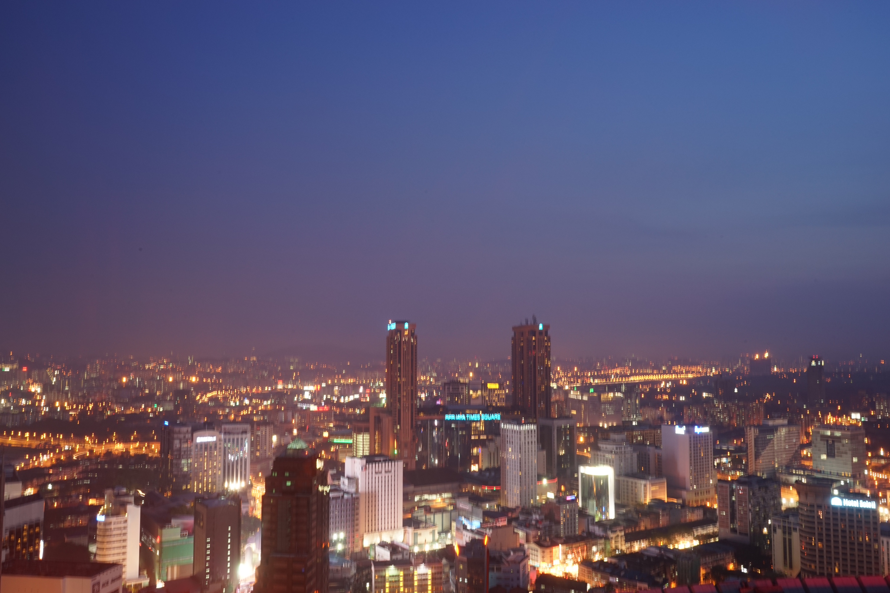 Wih, keren euy pemandangannya. Gedung tinggi, landmark negara, cahaya yang gemerlap dan berpendar ke mana-mana :hihi.