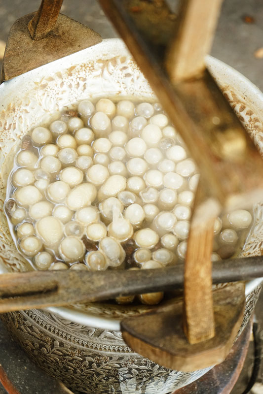Jim Thomson Museum Bangkok – Gumpalan-gumpalan telur ulat sutra yang akan ditenun (kalau gak salah)