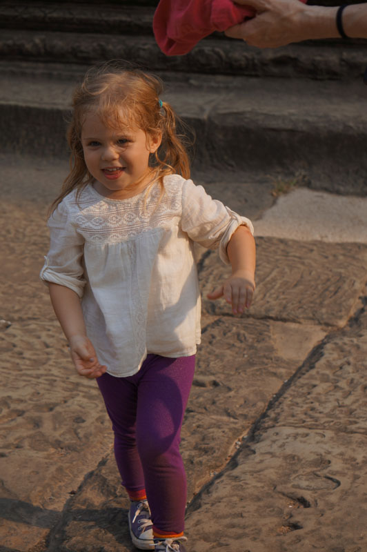 Teori saya terpatahkan oleh si bocah kecil bule ini. Mereka dari Inggris. Kami ketemu si bocah (kita sebutlah namanya Ungu) pagi-pagi subuh di Angkor Wat ngintilin ibunya dan temen ibunya (cewek). Pagi-pagi dia udah lari-lari semangat kesana sini sementara saya dan Matt cranky karena belon kena kopi.