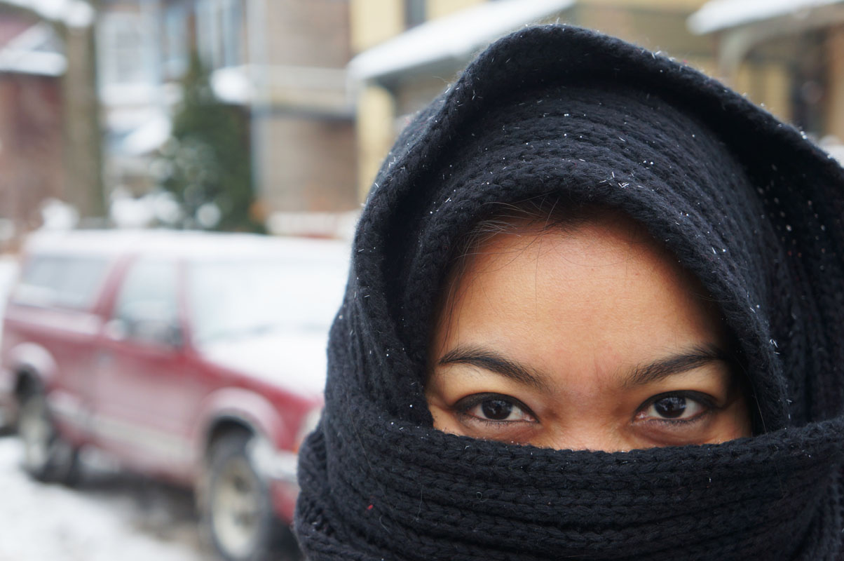 Itu kedinginan hahaha, jadi syalnya pindah ke kepala. Abis sangking dinginnya, kuping kayak mau putus, Beb.