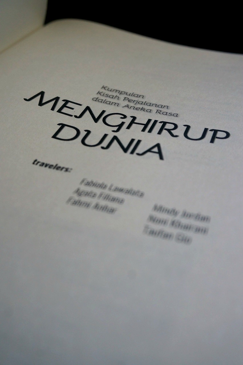 Menghirup Dunia bercerita tentang orang-orang yang kami temuin ketika melakukan perjalanan. Tentu masih ada kekurangan (dari saya hehe) tapi saya harap ketika kamu membaca buku ini sama happy’nya seperti ketika kami menuliskan ceritanya.