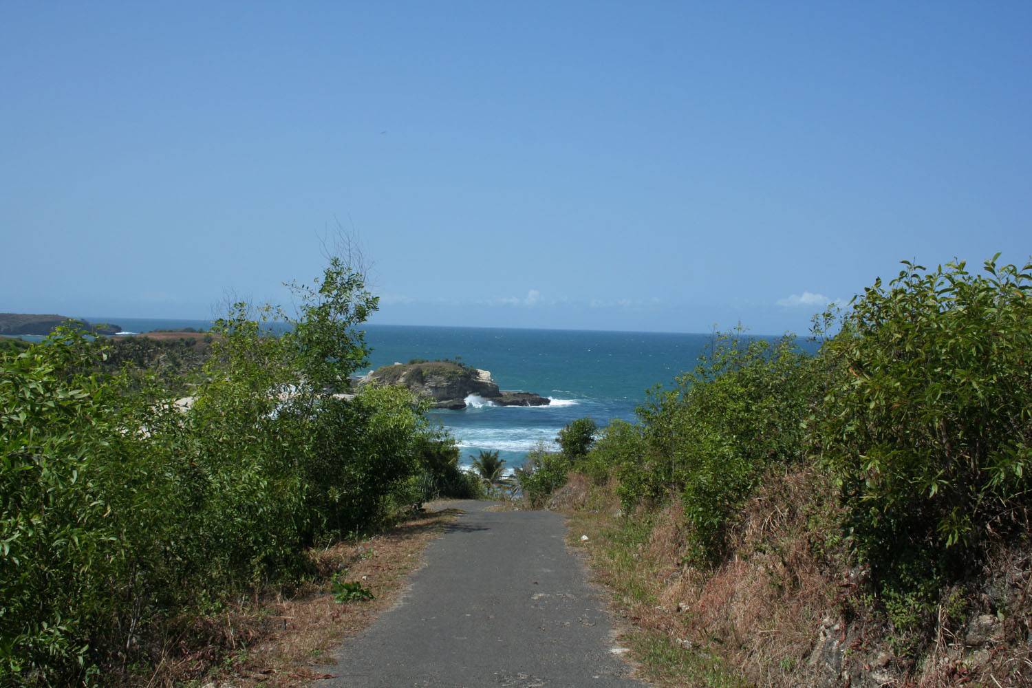5. sekarang ada jalan disebelah tebing itu mba, kalo kita lihat dari pantainya sekilas seperti kebun warga aja. tapi justru dari jalan atas itu bikin pantai klayar kelihatan makin kece. dan belum banyak yang tau. mungkin karena jalannya cuman dibuat dari cor2an semen aja.