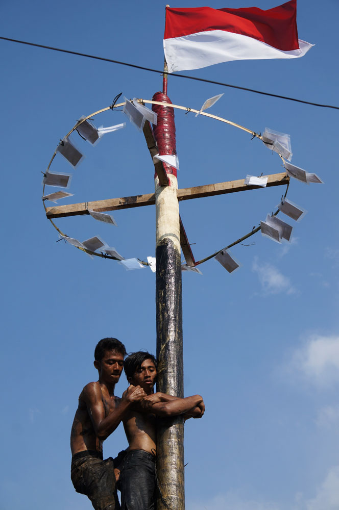 Baru hari ini saya nonton lomba-lomba seru lagi di kampung. Gak tanggung-tanggung 3 kampung padahal perut mulai melilit karena jadwal period mulai datang. Kata si Matt demi…. demi panjat pinang. Sudah lama sekali saya gak pernah melihat panjat pinang makanya rada-rada kaget tahun ini disekitaran rumah hampir semua kelurahan ngadain. Paling lucu saya kerumah ortu, nungguin yang disana padahal cuman keluar kompleks rumah ehhh ada yang ngadain juga haha.