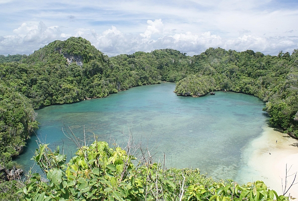 Akhirnya setelah 2 jam berjalan di jalur yang tidak manis sama sekali, tibalah kami di bibir laguna. Jalanan sempit hanya cukup satu orang. Kalau terpeleset dipastikan masuk kedalam laguna yang berair jernih. Saya sempat curiga kalau airnya terbuat dari Evian. Cantik sekali. Begitu sampai di pinggir pantai yang berwarna putih kekuningan kami berlompatan nyebur ke dalam airnya. Sepi hanya kami ber6 saat itu.
