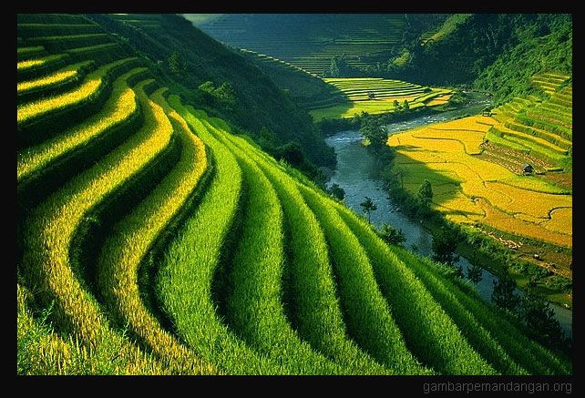Bagus ya, gimana sih bisa bikin sawah kayak gitu. Lebih pantes disebut lukisan hehe. Jadi petani2 disini kayaknya selain jadi petani tapi jiwanya adalah pelukis 🙂