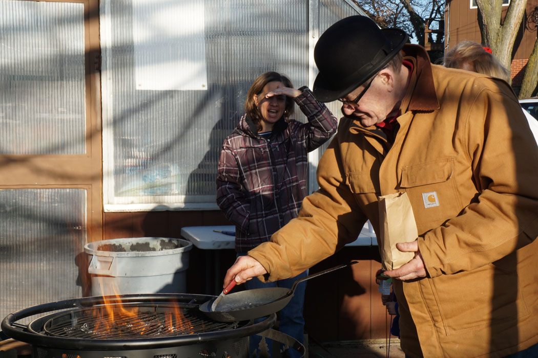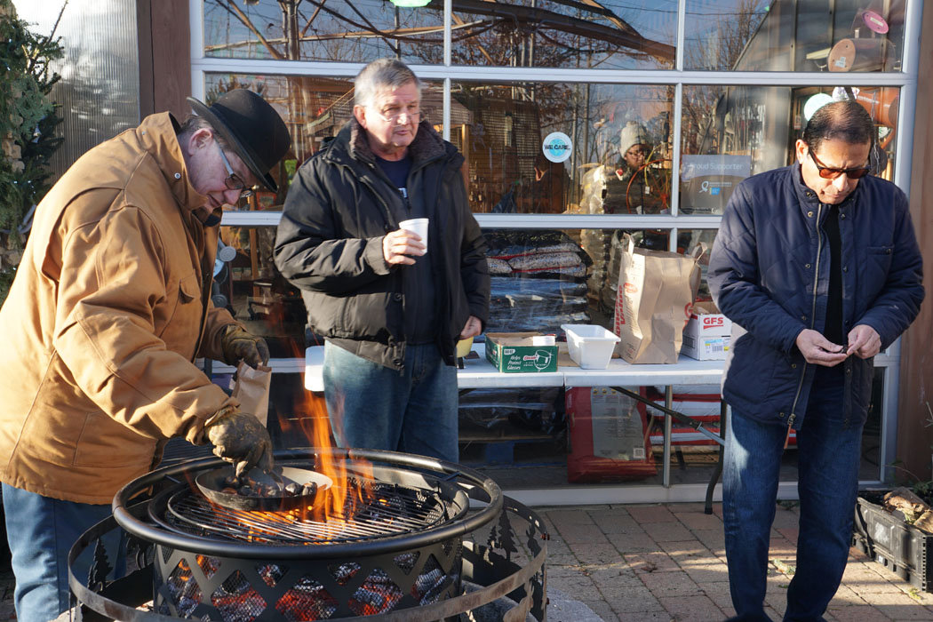Bapaknya Matt punya satu toko langganan. Kalau lagi gak jual pohon toko ini biasanya jualan keperluan berkebun, mancing dan birding. Trus selama 2 hari biasanya di minggu pertama bulan Desember mereka open house. Open house itu artinya selama dua hari (biasanya weekend) akan disediakan minuman gratis (alkohon dan glogg), cookies, cake dan chesnut bakar. Bapak pemilik toko akan memanggang chestnut di luar tokonya sambil ngobrol-ngobrol dengan semua pelanggan yang datang. Setiap kali ada orang baru datang pasti diajakin ngobrol termasuk kita. Pertanyaannya mirip seperti 2 tahun lalu sehingga kita mikirnya dia cuman basa basi doang nih hahahah.