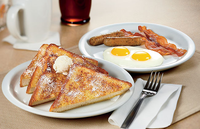Ok, back to Dennys, saya pesen french toast. Namanya pun sarapan ya jadi saya pikir pasti porsinya kecil dan yang datang kayak gini dong tanpa bacon tentunya. Itu yang ngeliat aja udah langsung eneg saking besarnya porsi yang dikasih. Makan satu slice roti aja saya udah kenyang banget, konon dikasih beberapa biji termasuk dikasih french toast dan telur. Hua………..mau meledak begitu keluar dari restoran.