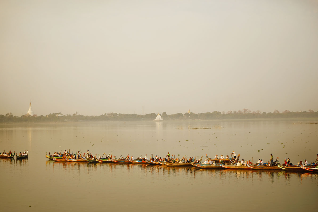 Jika ingin mengunjungi U-Bein Bridge, saran saya ya mendingan dipagi ketika matahari terbit atau terbenam. Ini kayaknya waktu paling ok. Kalau sunset bahkan ada paket untuk nungguin matahari terbenam sambil duduk-duduk diatas kapal kayu. Saya baru sadar semua kapal ini nongkrongin matahari terbenam setelah hilir mudik beberapa kali haha. Akibat tidur kurang semuanya pun error.
