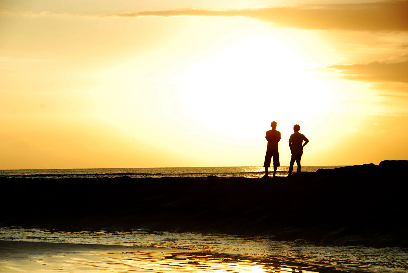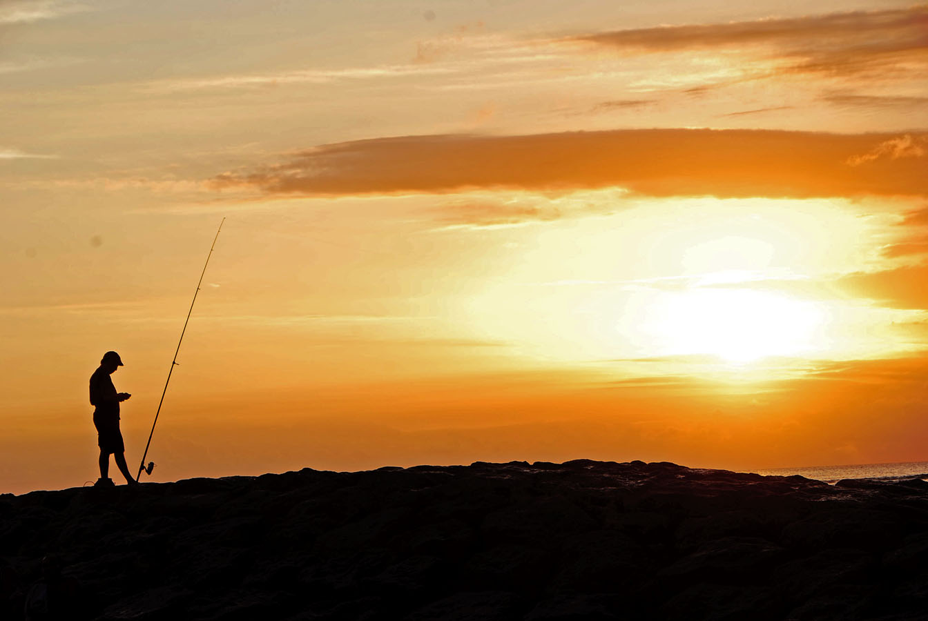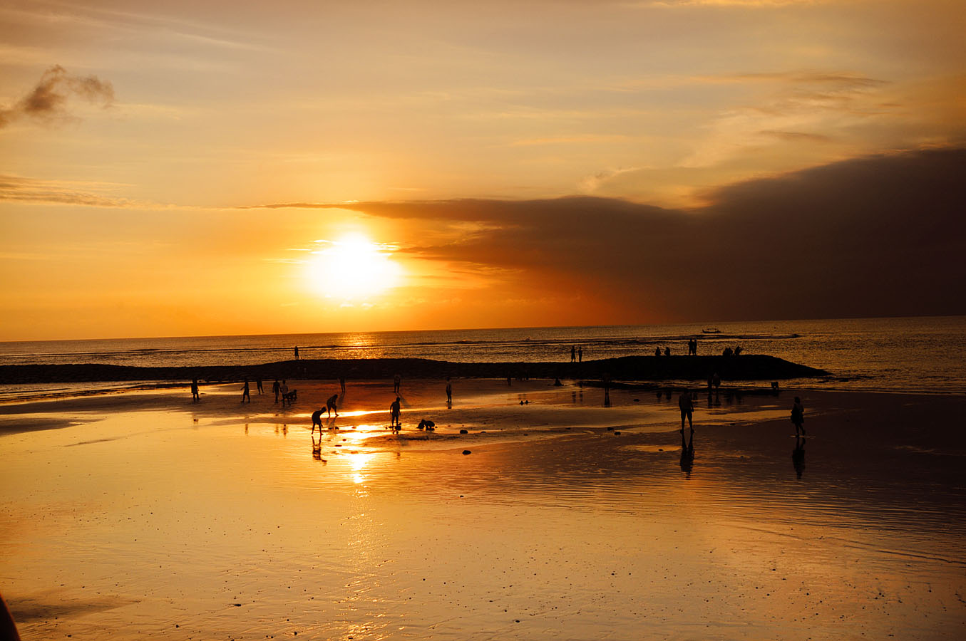 Lebih seru lagi kalau tadi saya bilang terlalu ramai tapi pas matahari terbenam malah bisa jadi objek foto yang mengasikkan. Orang yang lagi mancing, lagi pacaran, lagi main air, pulang surfing, keluarga yang cuman jalan-jalan atau penduduk lokal dengan binatang peliharannya yang berjalan menyusuri bibir pantai.