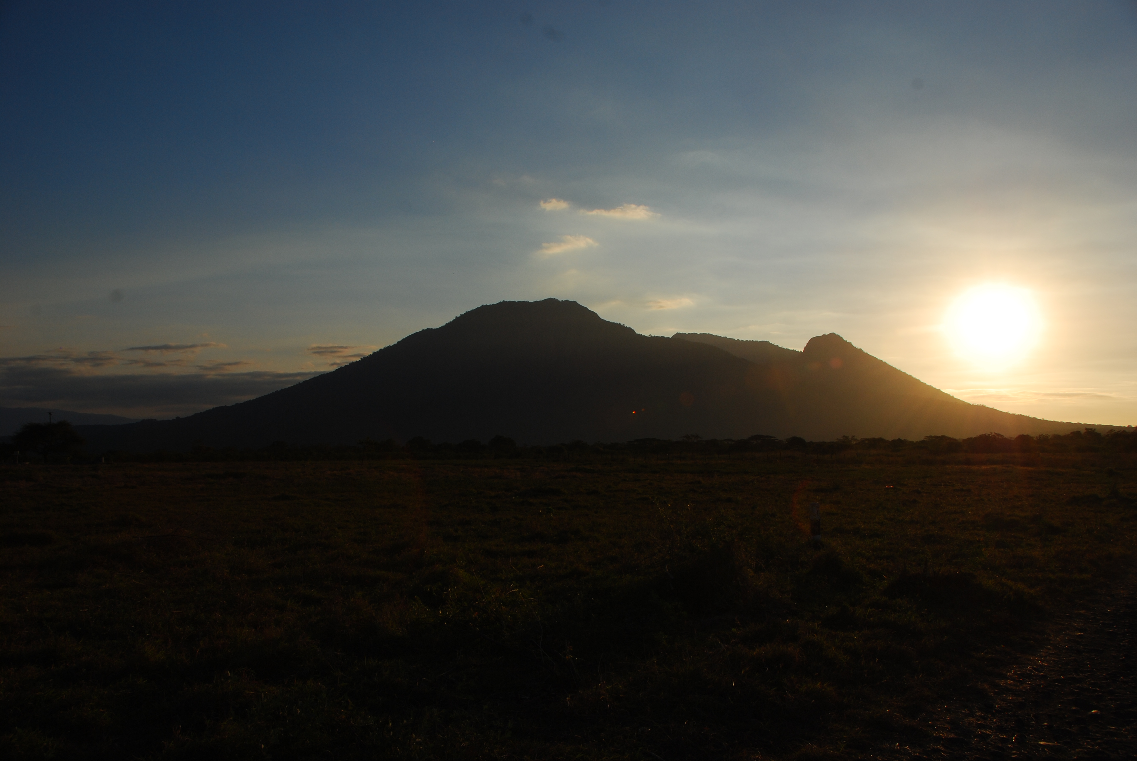Dan inilah saat yang ditunggu-tunggu saat matahari terbenam. Duh seneng deh liat sinar matahari menyinari savana. Warnanya beneran bagus banget. Kuning keemasan, apalagi ada gunung dikejauhan. Beneran kece.