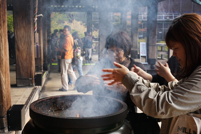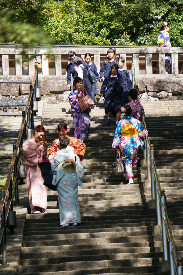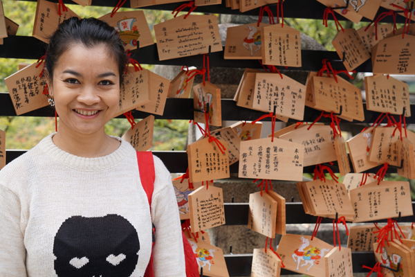 Selain kami berdua tentu saja kuil ini juga dikunjungi banyak sekali wisatawan, lokal dan mancanegara. Group sekolah silih berganti memasuki kuil. Sesekali saya melihat pemandu wisatanya atau gurunya menjelaskan ke anak-anak tersebut. Herannya anak-anak yang mengikuti tour terlihat khusuk mendengarkan penjelasan tersebut tanpa berlarian kesana sini. Rapi dan tidak berisik. Inilah salah satu yang paling saya suka dari Jepang. Walaupun tempat tersebut ramai dikunjungi turis, suasananya tetap terjaga. Tenang dan tidak membuat orang lain terganggu.