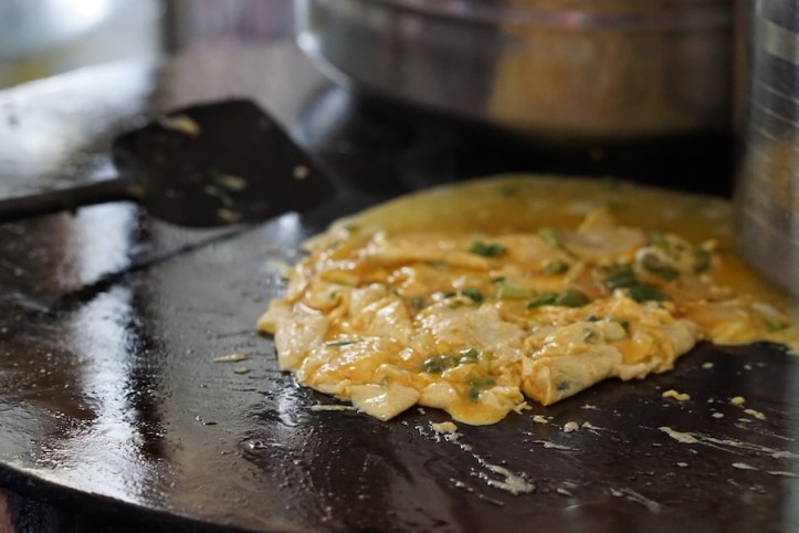 Dari parkiran jalan, kami memesan mie goreng. Pilihannya bisa mie yang sedikit becek atau goreng dengan telur ayam/bebek. Katanya mie goreng ini hanya ada sampai sekitar jam 11 siang. Jadi pastikan datang ke tempat ini sebelum jam tersebut. Seporsi mie goreng kalau tidak salah sekitar Rp 15.000