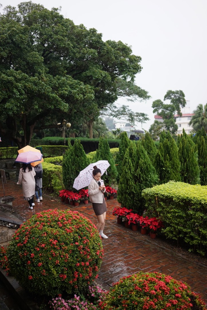 Di tempat ini sejujurnya menyenangkan sekali. Banyak pohon, bunga, pemandangannya bagus, bersih dan yang pasti bangunannya cantik. Sayangnya hujan dan angin bikin males untuk foto atau ngeluarin kamera. Udah ribet sendiri sama payung dan kepala yang nyut-nyutan haha.